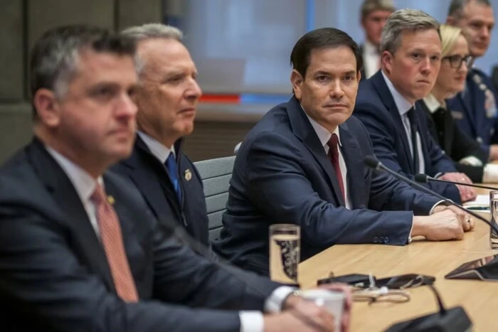 Марко Рубіо (у центрі) та Стів Віткофф (другий ліворуч) під час зустрічі з українською делегацією в Женеві, 23 листопада 2025 року